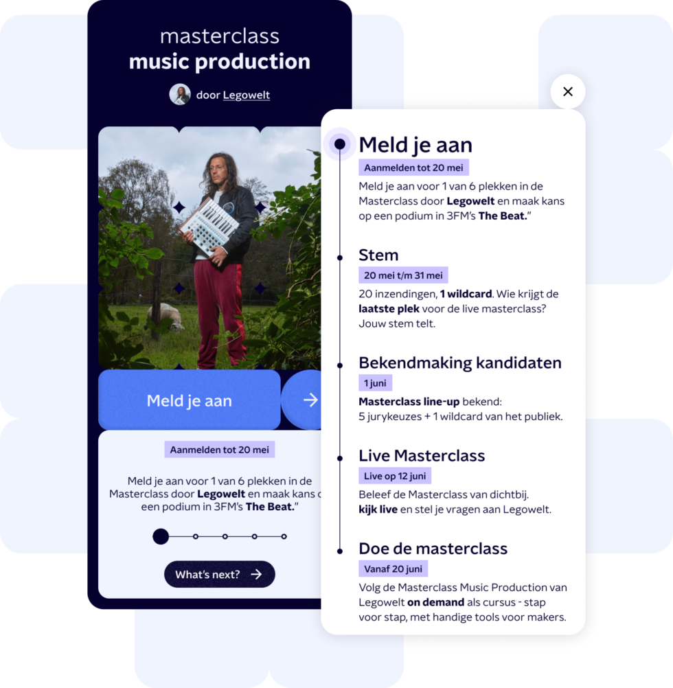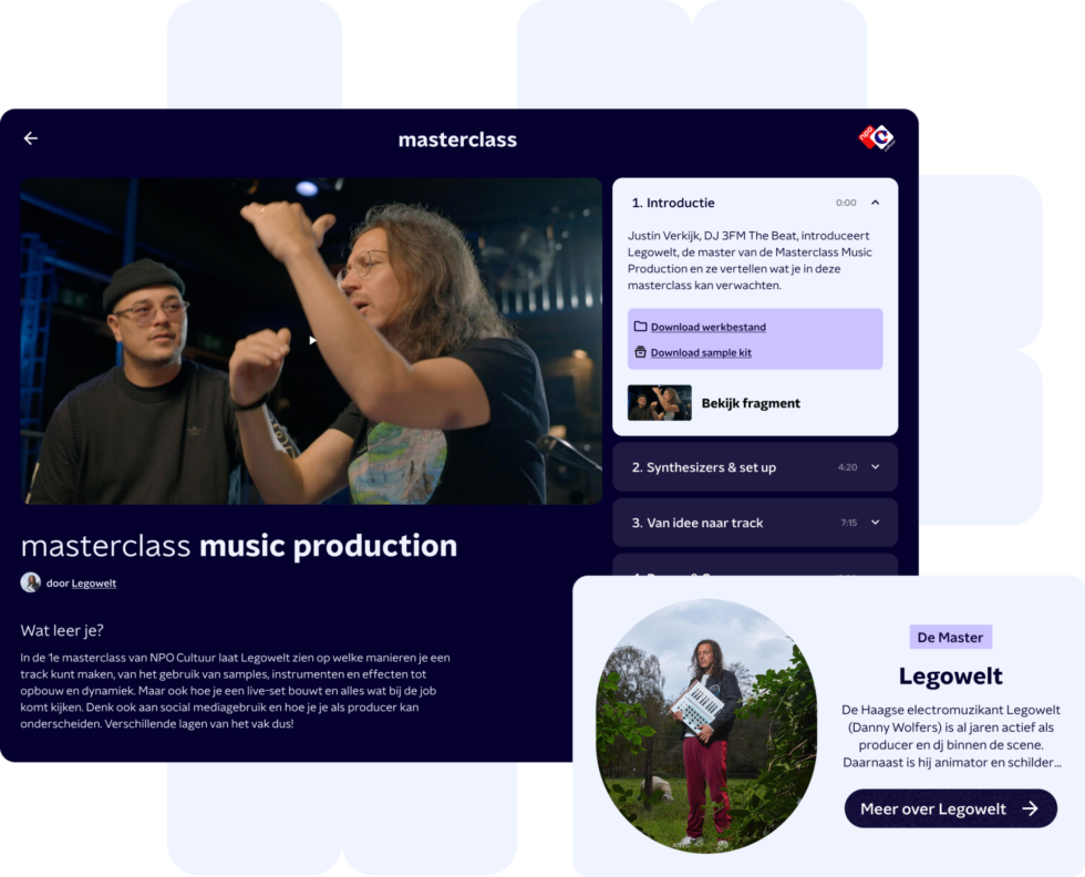 Masterclass is een nieuw type online ervaring binnen de publieke omroep: een interactieve leeromgeving die kijkers niet alleen laat kijken, maar ook stimuleert om zelf stappen te zetten.